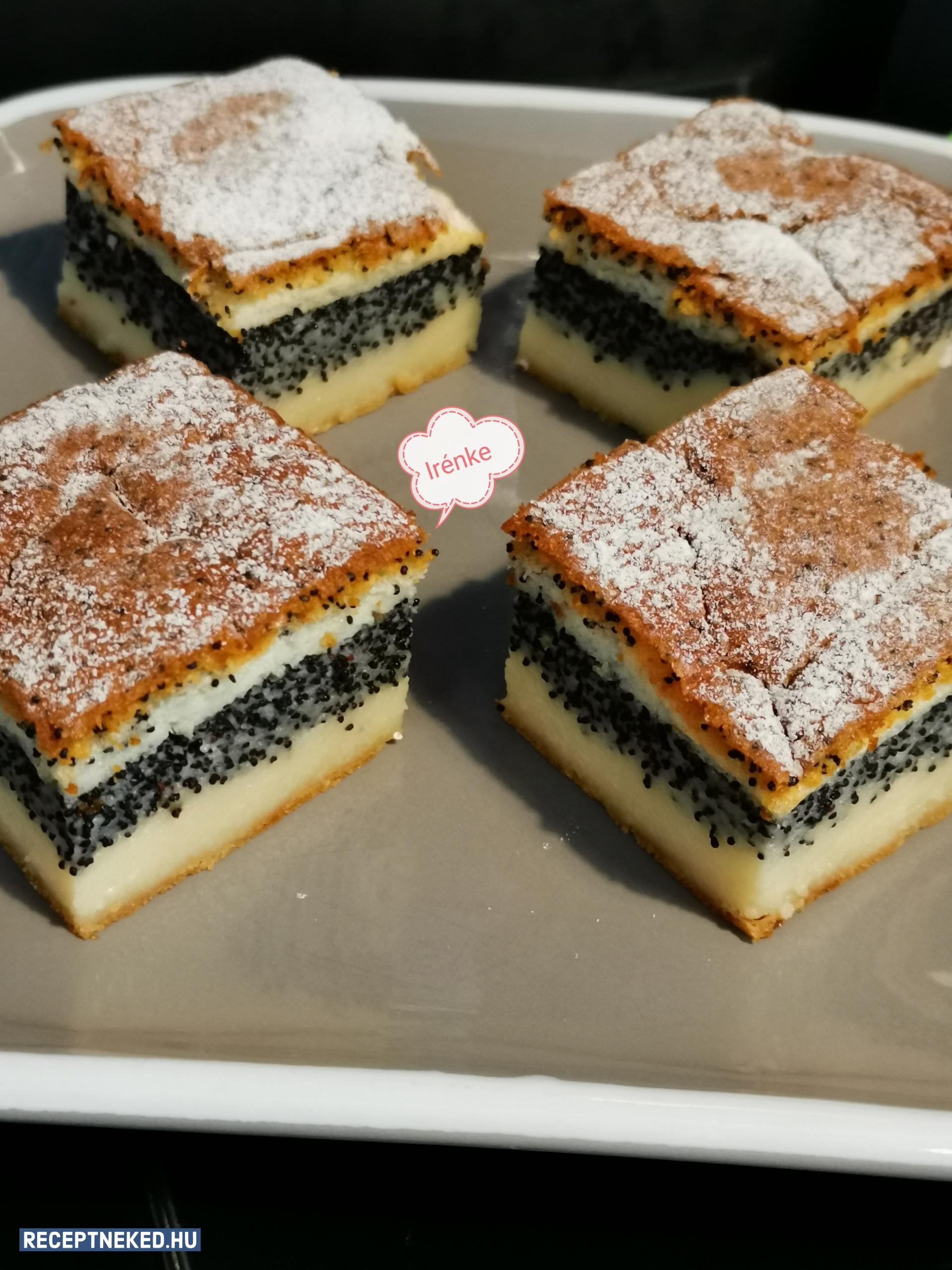 A mákos masszát belesimítjuk az előkészített tepsibe és 180 fokra melegített sütőben 15 perc alatt megsütjük, majd kihűtjük.
