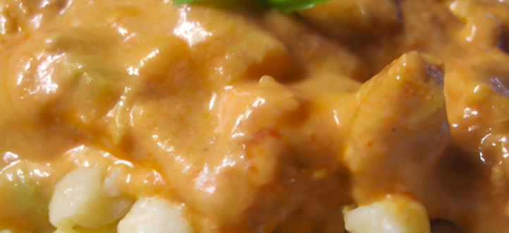 Főétel C: Spagetti cukkinikrémmel és fűszeres csirkemájjal