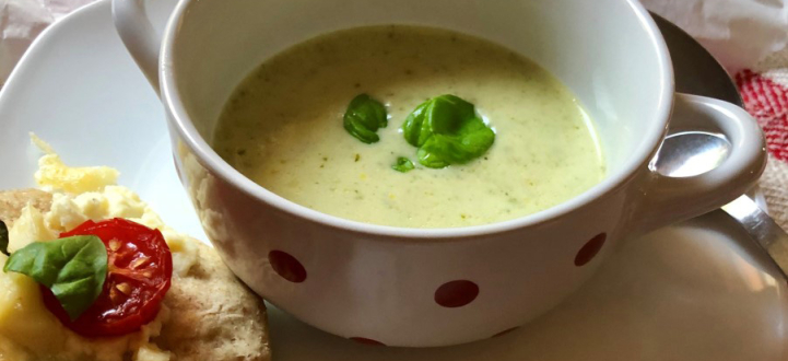 Leves A: Bazsalikomos cukkinikrémleves mini lepénnyel