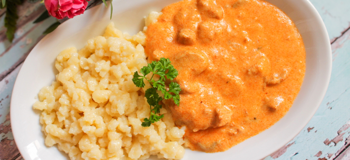 Főétel A: Tejfölös gombás csirke nokedlivel