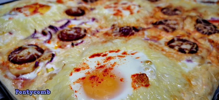 1. Baconos kolbászos pizza tepsiben sütve recept