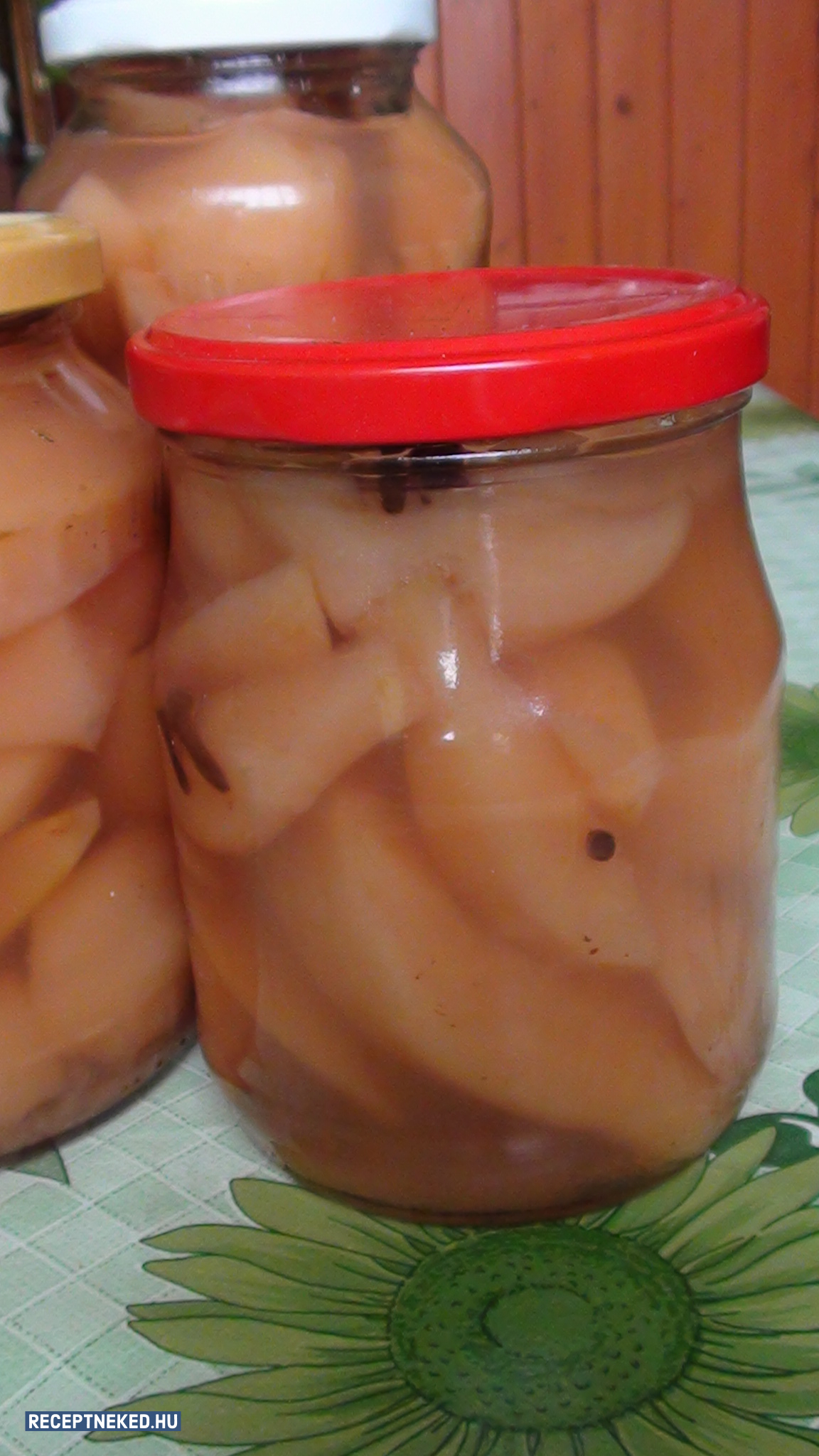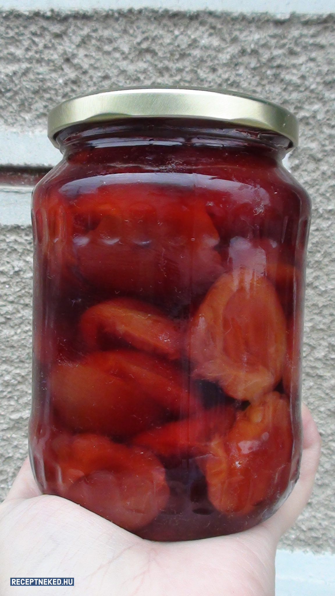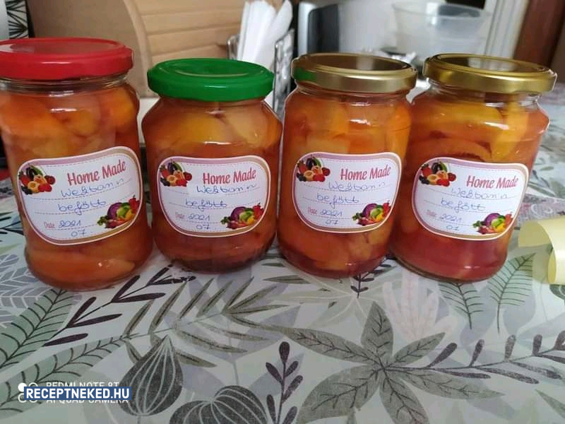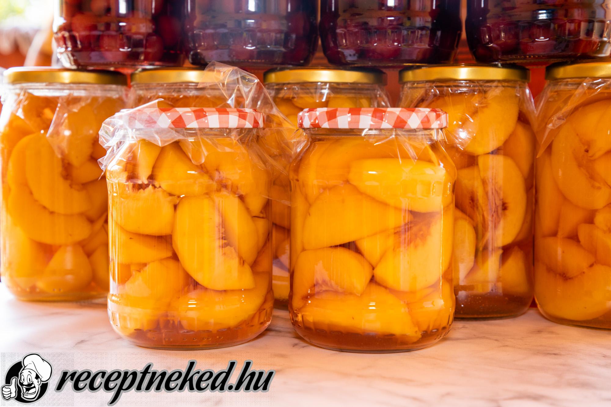 Ezután a gyümölcsöt üvegekbe rakjuk, a szirupot ismét felforraljuk, felöntjük vele a gyümölcsöt, légmentesen lezárjuk az üvegeket és szobahőmérsékleten hagyjuk kihűlni.