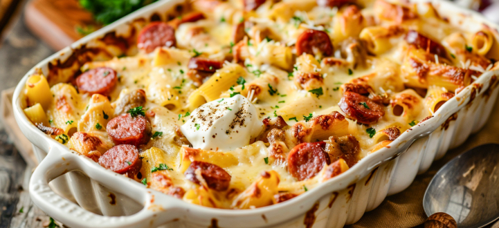 4. Sajtos kolbászos penne recept