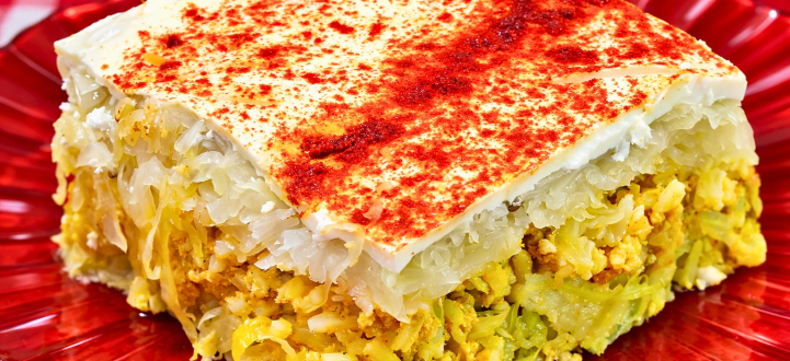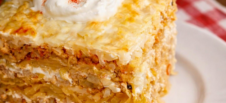 11. Rakott karalábé csirkehússal, zöldségekkel és kölessel recept