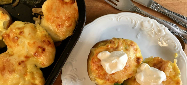 12. Fűszeres túrókrémmel és sajttal sült burgonya recept