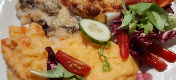 - 1 egész, csont nélküli csirkemell fűszerezve és megsütve