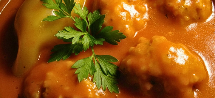 Főétel B: Zöldborsós tokány pirított tarhonyával