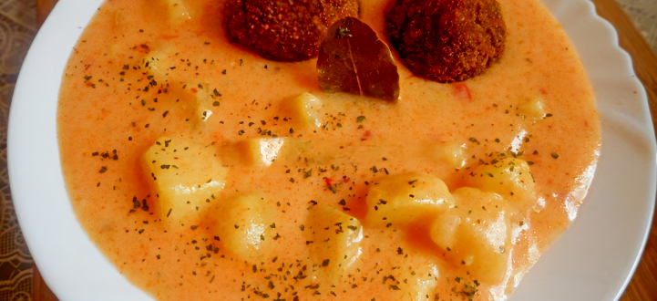Főétel A: Tejfölös krumplifőzelék fasírttal