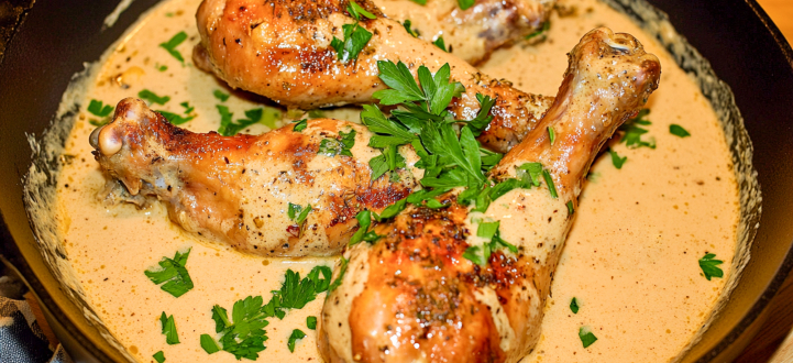 Főétel B: Tejfölös-mustáros csirkecomb