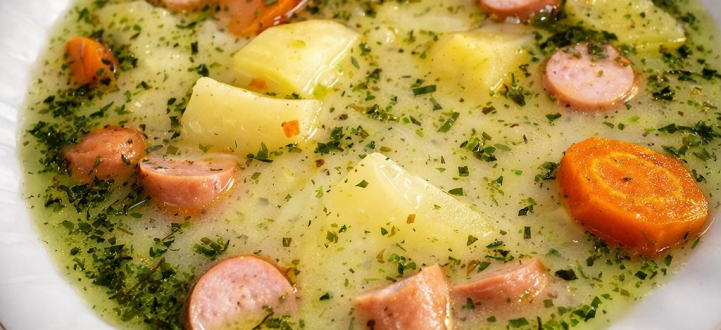 Leves A: Tárkonyos burgonya leves virslivel