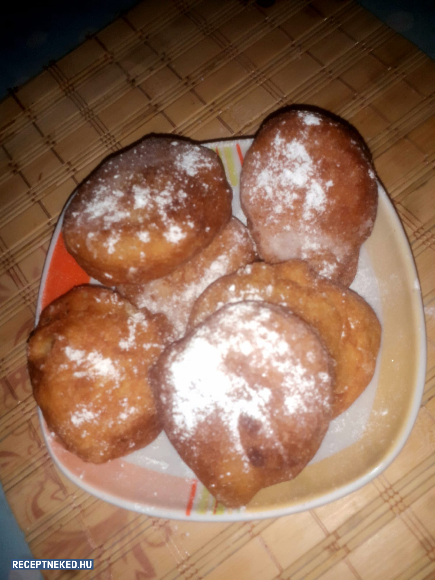 2 evőkanál segítségével pár darabot szaggatunk a forró olajba. Ha nem tesszük sűrűre, akkor maguktól megfordulnak a fánkok.