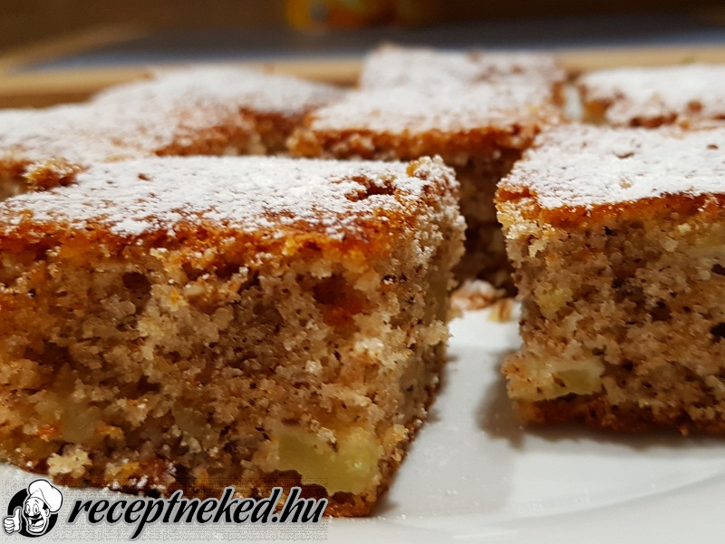 Ha megsült és kihűlt, utána szép egyforma kockákra felvágjuk és porcukorral megszórjuk a tetejét.