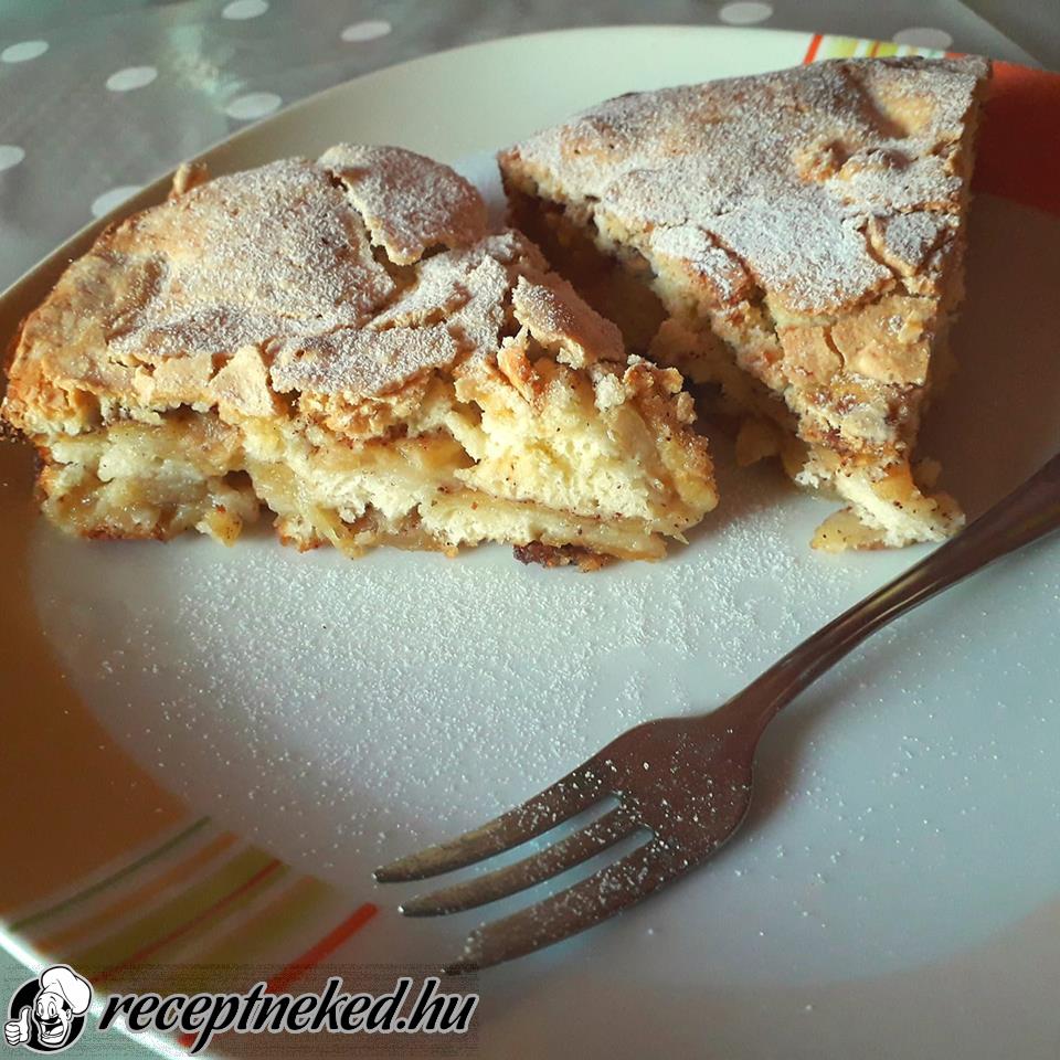 A lisztes keverék 1/3-át beleszórjuk a tepsibe, majd ráterítjük az alma 1/3-át és addig folytatjuk a rétegzést, amíg elfogy a lisztes keverék és az alma is. A tejes keveréket újra átkeverjük, majd egyenletesen ráöntjük a tepsiben lévő hozzávalókra.
