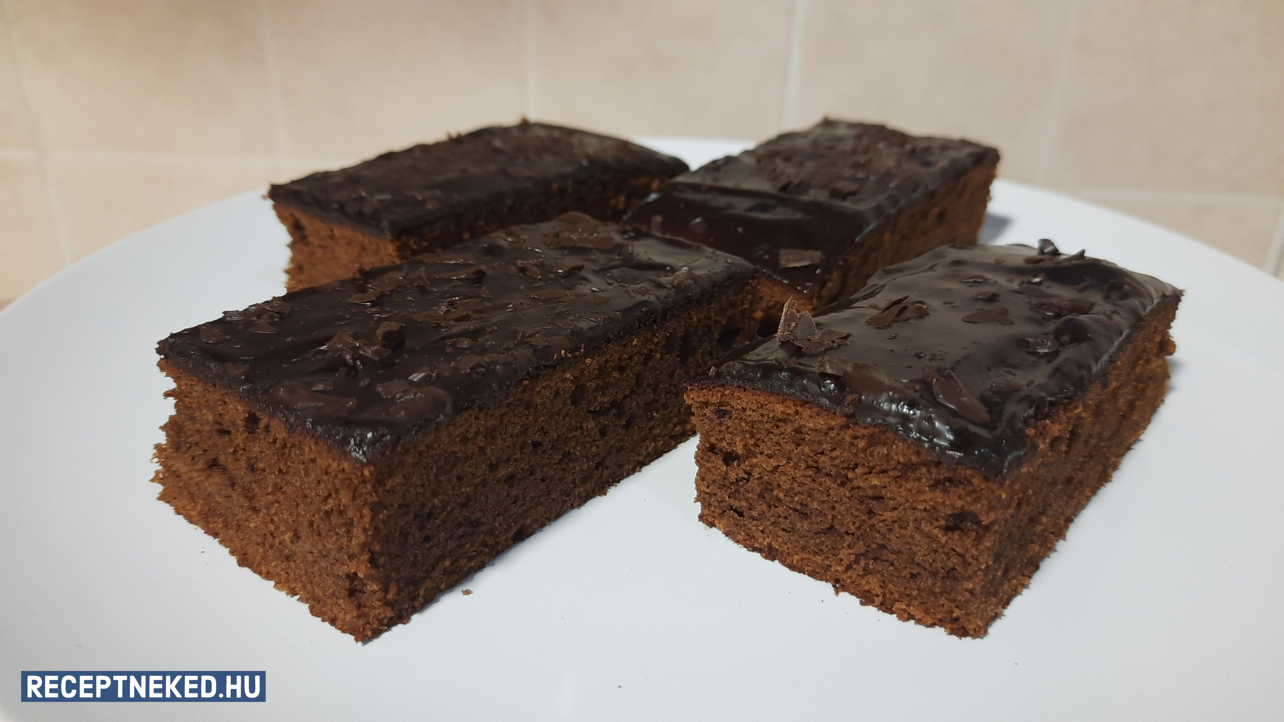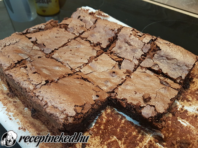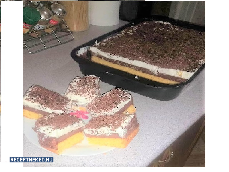 A tésztát kizsírozott, kilisztezett 25*30 cm-es tepsibe öntjük és előmelegített sütőben 180 fokon megsütjük kb 40 perc alatt.