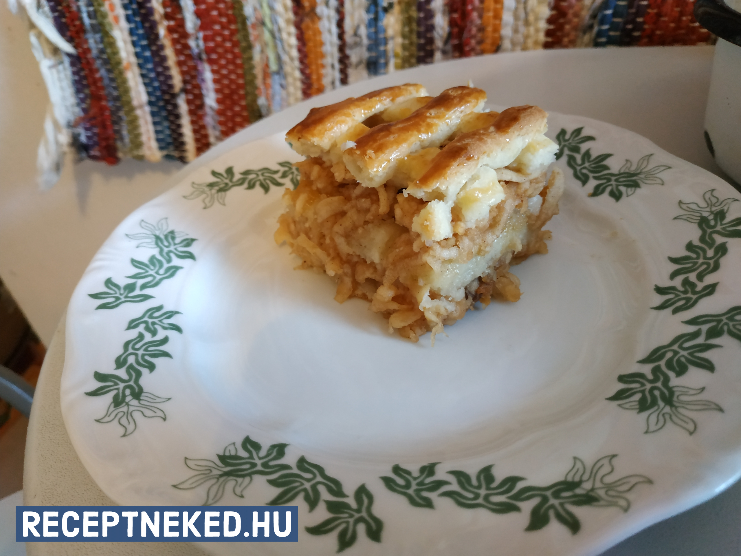 A maradék tésztát is kinyújtjuk és befedjük vele a tölteléket.