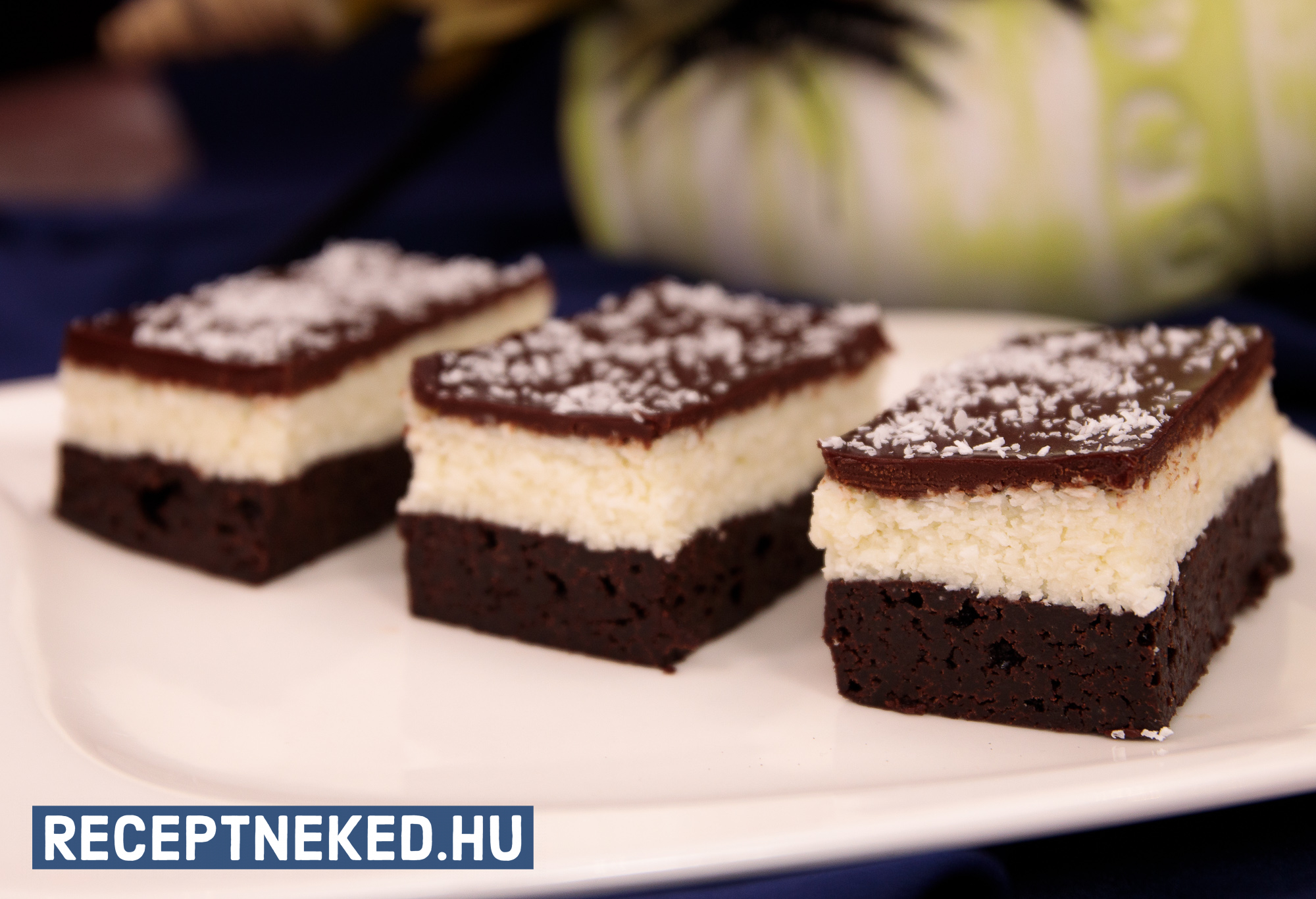 Egy magasabb falú tepsiben, sütőpapírral bélelve, öntsük bele a csokoládés keverék kétharmadát, majd egy kanállal osszuk el a sajtkrémet az egész felületen.
