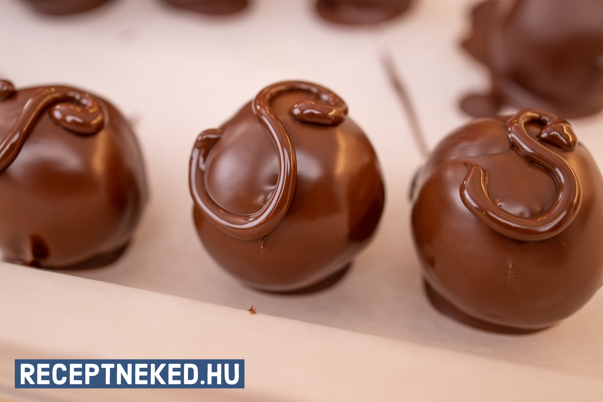 Amikor már megszilárdultak, visszatesszük a tűzre a karamellt és most a csupasz felüket mártjuk bele és a megszilárdult felükkel tesszük a rácsra.