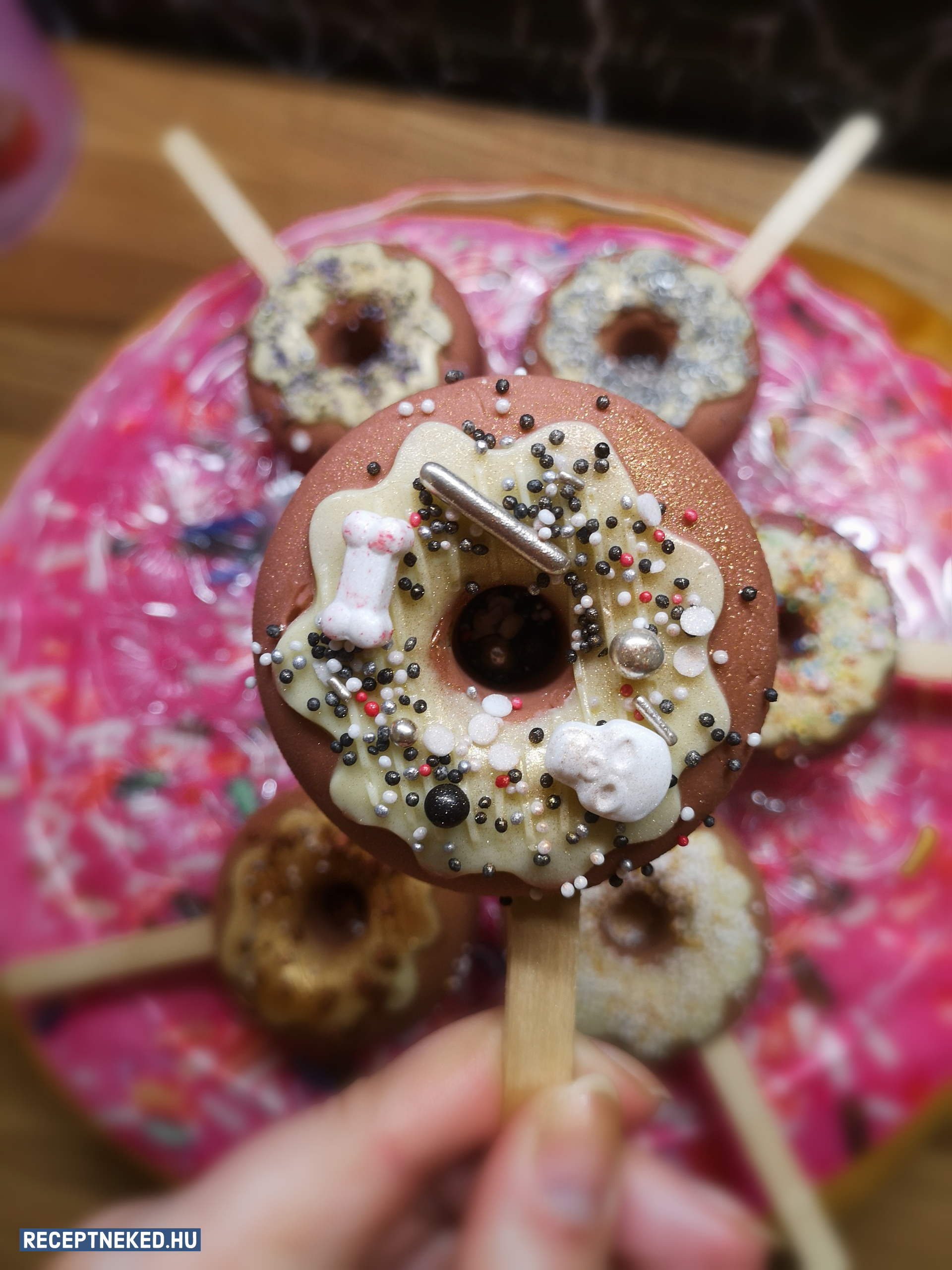 A csokit az olajjal olvasszuk össze, majd a fánkok tetejét mártsuk bele. Amíg nem szilárdul meg a csoki, szórhatunk rá durvára vágott pisztáciát vagy mogyorót is.