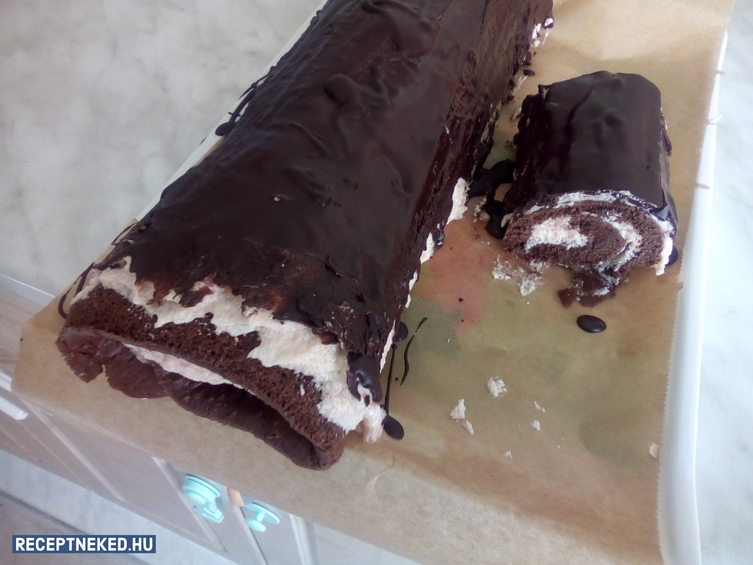 Egy nagyobb, tiszta konyharuhát porcukorral megszórunk. A tésztáról a papírt lehúzzuk, majd forrón a konyharuhával feltekerjük és így hagyjuk, a ruhában kihűlni.