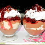 A kihűlt piskótát vágjuk apró darabokra, és jöhet is a rétegezés! :) A poharak aljába először jön a krém, rá piskóta, megint krém, meggy, piskóta és ismét krém. :D