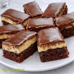A mázat egyenletesen oszlassuk el a sütemény tetején, majd szeleteljük néhány óra (vagy egy éjszaka) pihentetés után, mikor teljesen megpuhult.