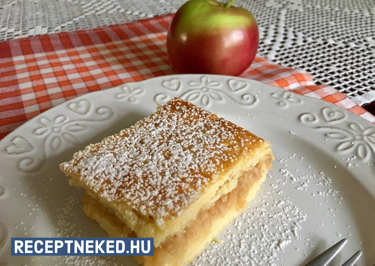 A másik cipót is kinyújtjuk tepsiméretűre, majd ráfektetjük az almára. A tetejét megkenjük tojássárgájával. A sütőt előmelegítjük 200 fokra, majd 40 perc alatt megsütjük.