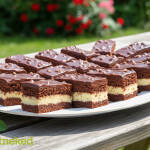 Amikor kihűlt, porcukorral szórtam meg a tetejét, kockákra vágva tálaltam.