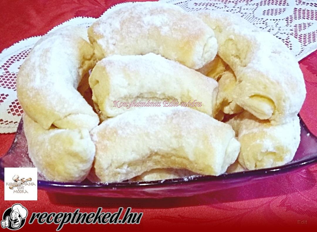 A tészta hozzávalóit egyszerűen összegyúrjuk, majd lisztezett deszkán kinyújtjuk. Pohárral kiszaggatjuk, majd az egyik sarkába lekvárt agy ízlés szerinti tölteléket teszünk és a kifliként feltekerjük.
