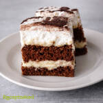 Ezután szórjuk meg a félretett kókuszreszelékkel, majd pár órára tegyük be a hűtőbe, hogy a kókuszhab kissé megdermedjen és az ízek jól összeérjenek.