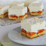 A tepsiben lévő és teljesen kihűlt tésztát kenjük meg a lekvárral, majd egyenletesen kanalazzuk rá a kókuszhabot.