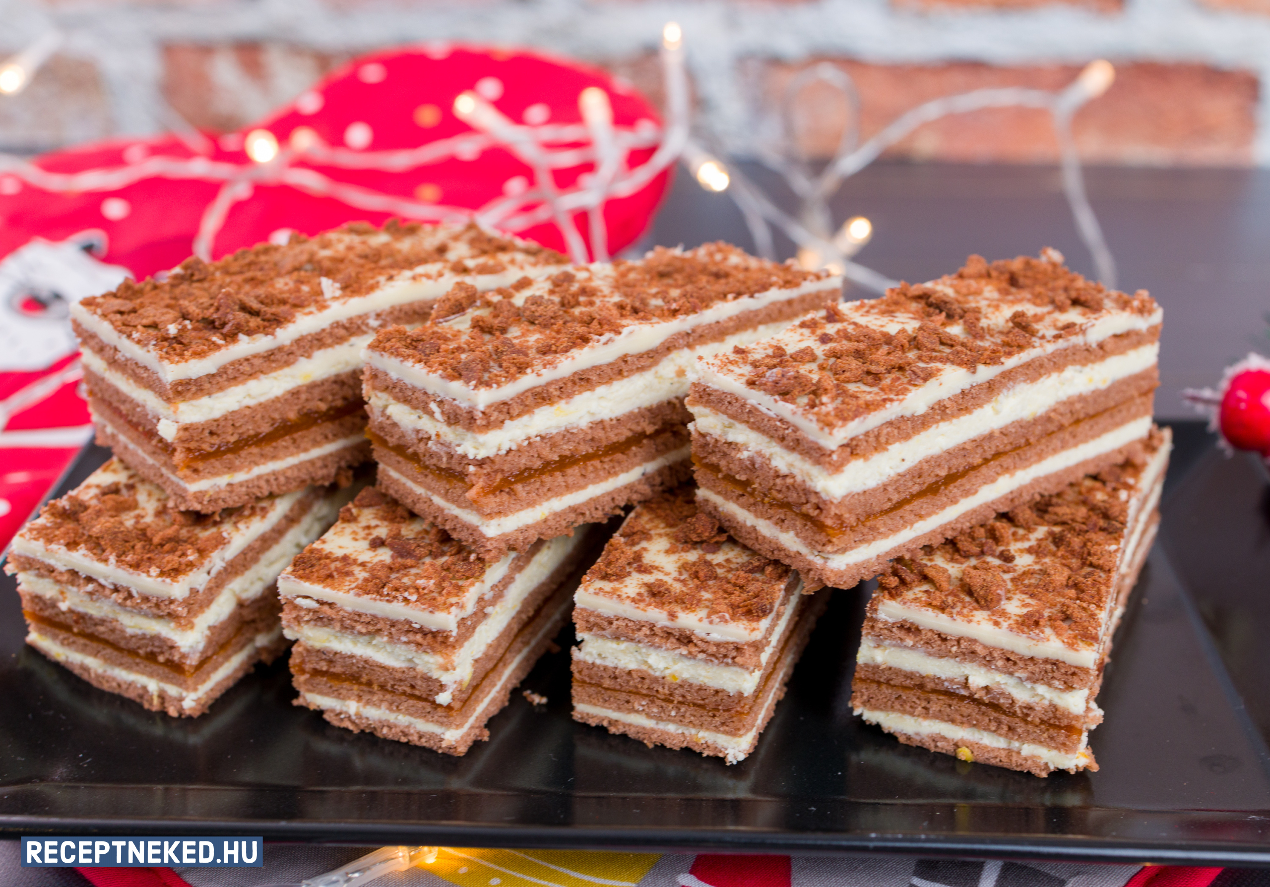 A süteményt hűtőbe tesszük egy éjszakára (vagy akár egy napra), hogy a lapok szépen megpuhuljanak. Szeletelés előtt a tetejét porcukorral meghintjük.