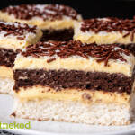A kókuszos tésztára rákenjük a krémet, jól lehűtjük és szeleteljük.