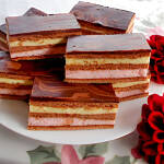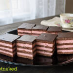 Ezután forró vízbe mártott, szárazra törölt késsel szeleteljük, így a csokimáz nem törik meg.