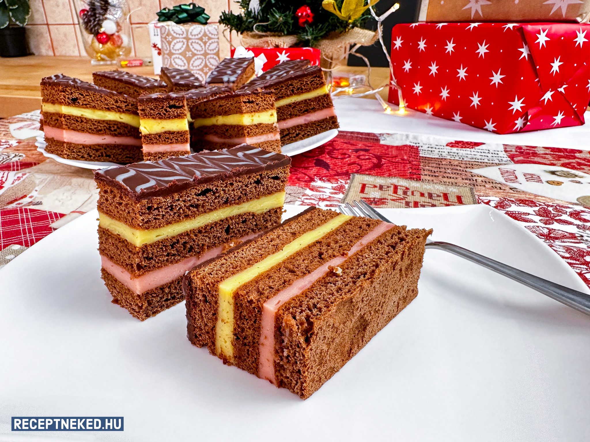 Mindhárom lapot egyenként, 180 °C-os sütőben kb. 12–15 perc alatt megsütjük. Sütés után hagyjuk teljesen kihűlni. A lapok először kissé kemények lesznek, de a krémtől másnapra szépen megpuhulnak.