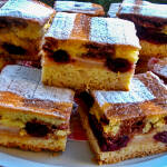 A tészta hozzávalóit összegyúrjuk és kétfelé vesszük. Az egyik tésztacipót kinyújtjuk, hogy beleférjen egy közepes tepsibe, rásimítjuk a krémet, majd befedjük a másik lappal.