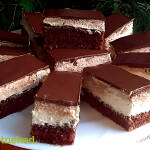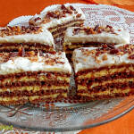 A két kisebbet kinyújtjuk fél centi vastagságúra, (kb. 30 x 25 cmtepsi méret) és 180 fokos előmelegített sütőben megsütjük. A nagy tésztát is kinyújtjuk, megsütjük. (azt vastagabra hagyjuk, az kerül a töltelékbe) Kihűtjük.