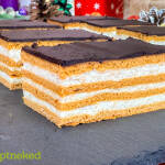 Az egyik lapot egy nagy tálcára vagy nyújtódeszkára tesszük, rákenjük a krém felét és rátesszük a következő lapot. Ezt megkenjük jó alaposan lekvárral, majd ráteszünk egy másik lapot és kissé rányomkodjuk. Erre rékenjük a maradék krémet és befedjük az utolsó lappal, amit szintén rányomkodunk kissé.