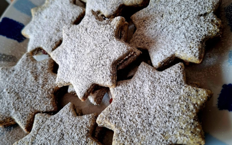 Amikor kihűltek, egy-egy kanál lekvárral összeragasztjuk a csillagokat.