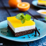 Amíg a tészta pihen elkészítjük a tölteléket. A befőtteket lecsepegtetjük, a levét pedig felfogjuk. A levet felforraljuk a fahéjjal és a szegfűszeggel, majd a fűszereket kivesszük, az étkezési keményítőt elkeverjük egy kevés meggylével, majd hozzáadjuk a többihez és besűrítjük. A meggyet belekeverve hűlni hagyjuk. A túrót alaposan kikeverjük a cukorral, citromlével és a citromhéjjal. A zselatint feloldjuk fél dl vízben, majd óvatosan a túróhoz adjuk. Ízlés szerint likőrrel dúsíthatjuk. A tejszínt felverjük a vaníliás cukorral, keveset félreteszünk a díszítéshez, majd a többit hozzáadjuk a túróhoz.