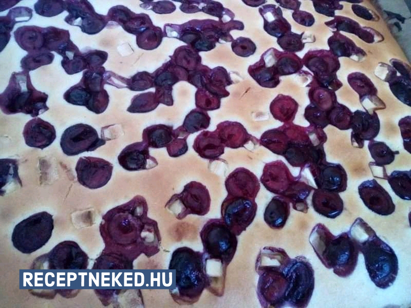 Magozott meggyet szórunk bele, kicsit bele is nyomkodhatjuk a tésztába. Aranysárgára sütjük.