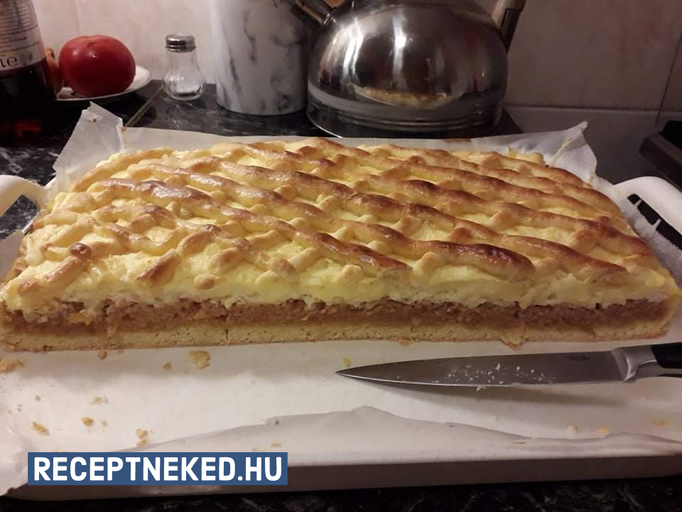 A tészta felét egy 30*20 cm-es, sütőpapírral bélelt tepsibe simítjuk és 180 fokra előmelegített sütőben kb 8-10 perc alatt megsütjük.