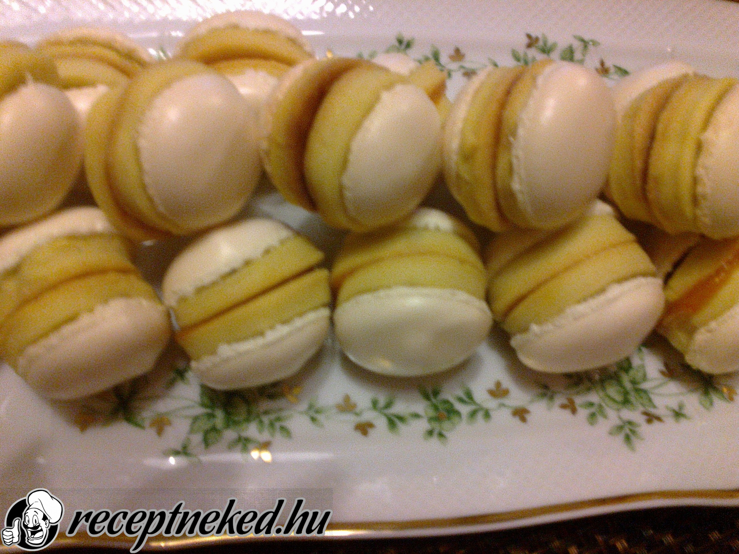 Végül egy zacskóba kanalazzuk a tojáshabot, aminek a végére vágunk egy kis lyukat és a korongok tetejére nyomunk belőle.