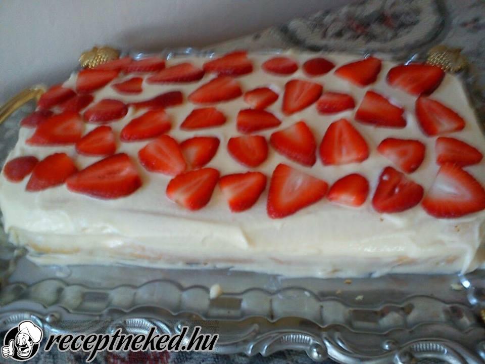 Az egyik lapot tálcára helyezzük, rákenjük a krémet, majd befedjük a másik lappal.