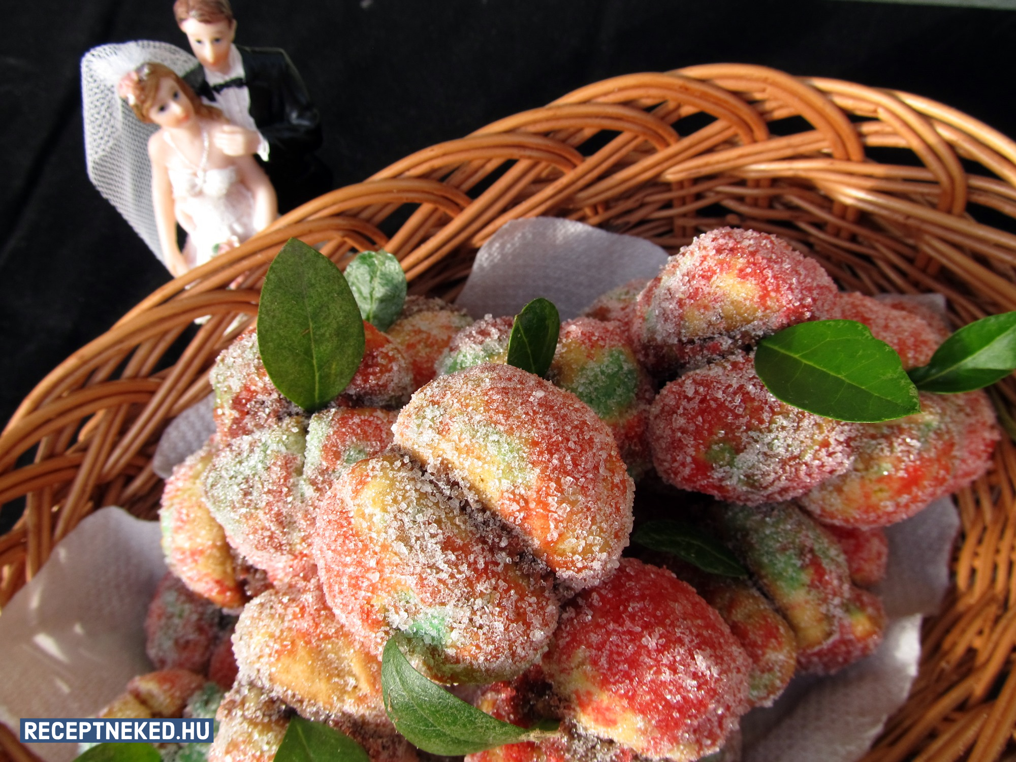 Az aromákat 1-1 kis tálba öntjük, és foltokban megkenjük a barack felületét. Tojásfehérjével lekenjük, és azonnal kristálycukorba forgatjuk a sütiket.