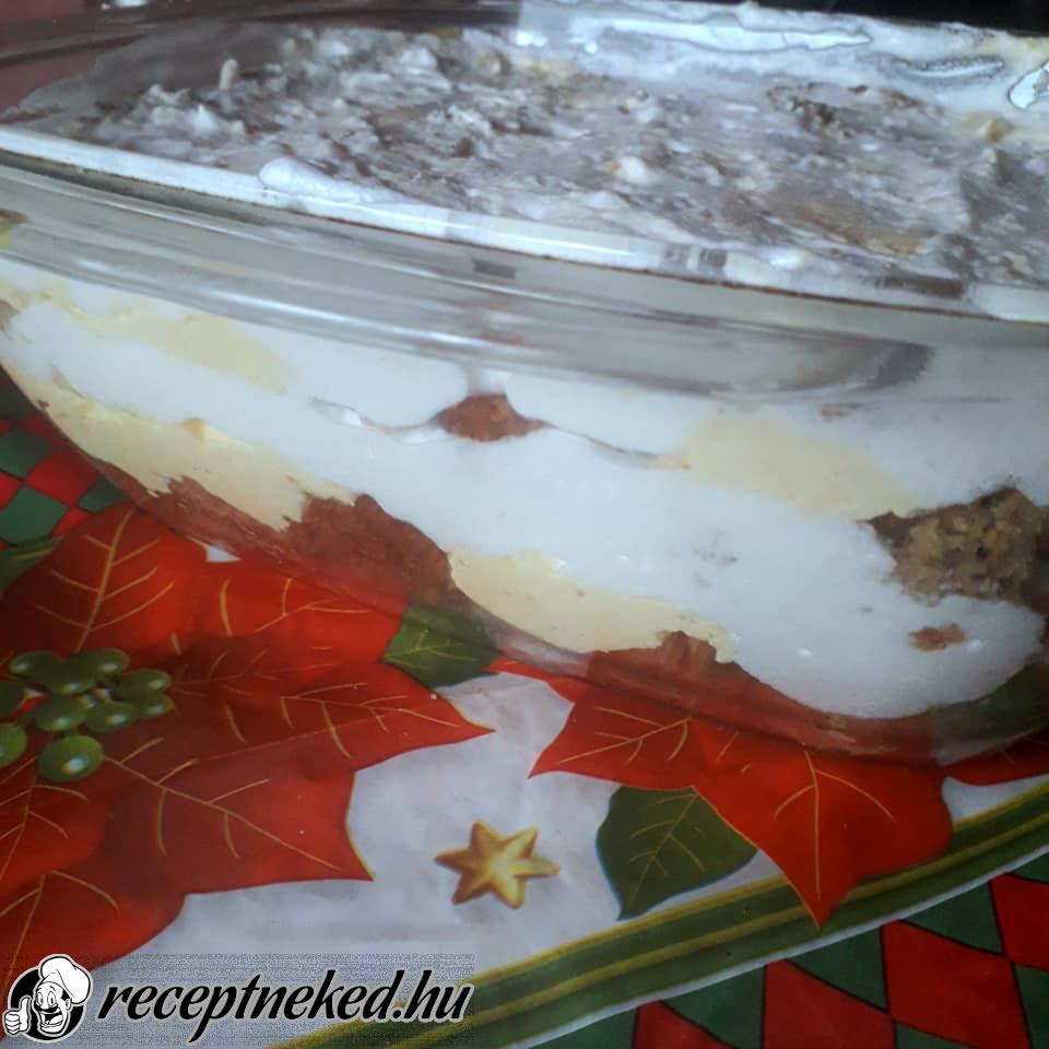 Megkenjük 1/3 rész krémmel, következik újból a tekercs réteg, majd a krém és a tekercsek.