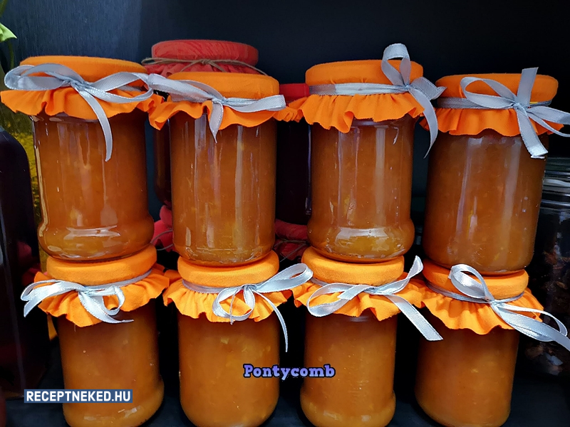A piskótát azonnal lekenjük baracklekvárral és feltekerjük. Amikor kihűlt 1 cm-es szeletekre vágjuk. 18 db szeletre lesz szükség.
