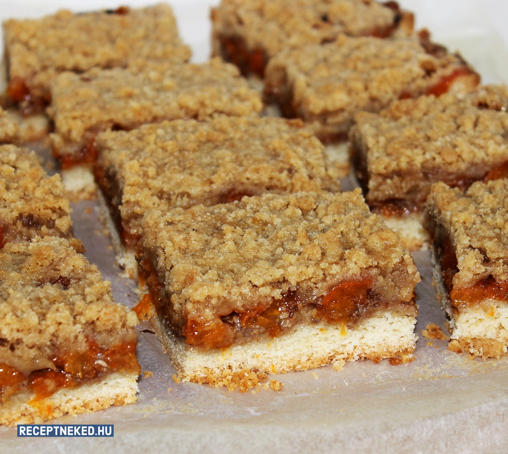 Tálalás előtt ízlés szerint szórjuk meg porcukorral a süteményt, majd szeleteljük fel és úgy kínáljuk. A tészta jó ropogós, a töltelék könnyű, krémes és jól illik hozzá a sárgabarack.