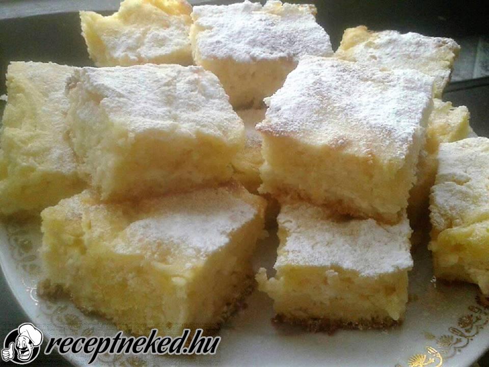 Mikor szép piros a teteje, kb a sütés 40. percében, akkor a tejfölt keverjük ki a tojással és kevés cukorralmajd és kenjük a réteslap tetejére, úgy fejezzük be a sütést, hogy ez a finomság rápiruljon!