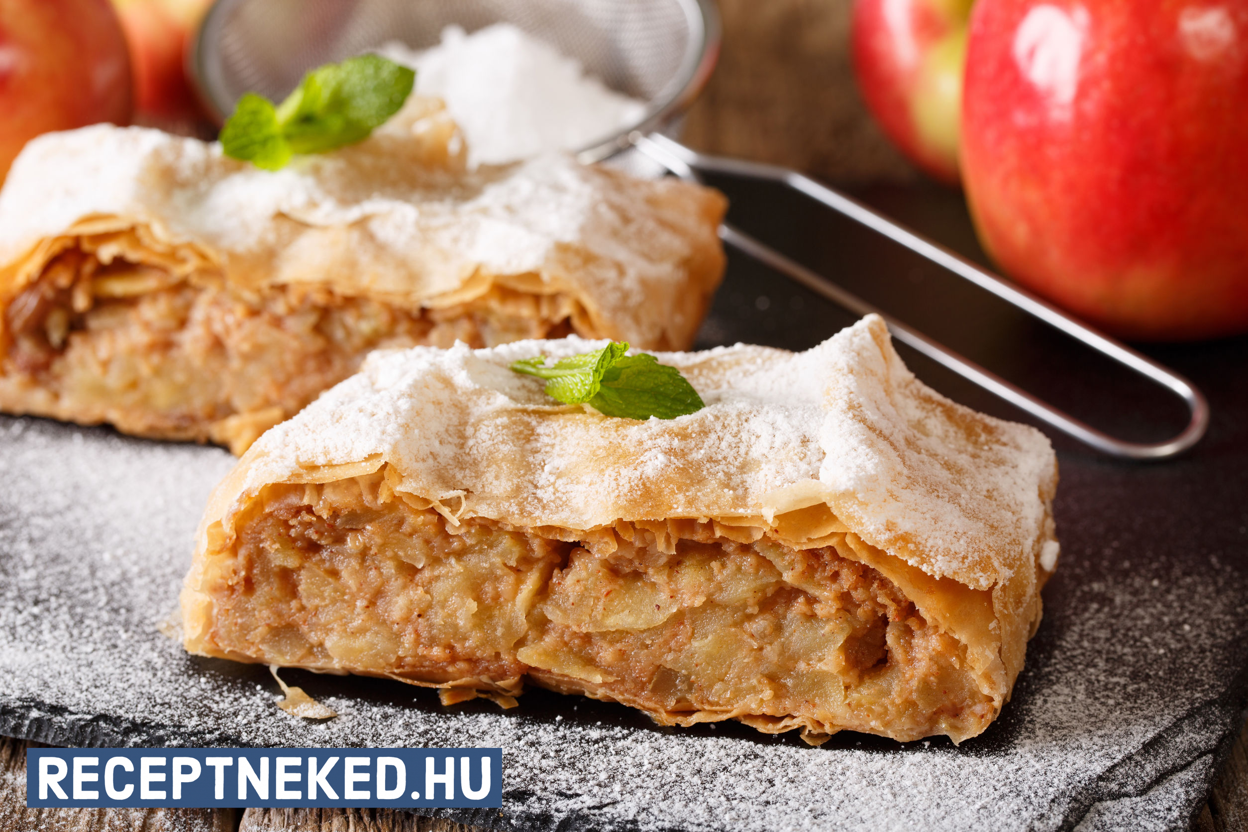- 1 kg reszelt alma + 3 ek cukor + 2 evőkanál zsemlemorzsa, fahéj, 20 dkg mazsola