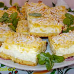 Előmelegített sütőben szép pirosra sütjük. Ha megsült, kockákra vágjuk, majd meghintjük porcukorral.